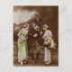 Tillbaka i början av 1900-talet var riktiga fotokort på modet. Hästar användes ofta i de iscensatta fotograferingarna för att avbilda romantik och lyx. Här har vi en gentleman i formell klänning med två välklädda damer och en borkhäst. Detta är skannat från ett autentiskt handfärgat vintage vykort och sedan retuscherat och förbättrat för att återställa det till sin forna glans.