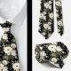 En svart-vit akvarell blomsterhalsduk har en elegant och sofistikerad design med blommor i olika former och storlekar, kontrasterande mot en svart eller vit bakgrund. De blomsterliknande motiven är invecklade, med kronblad, blad och stjälkar renderade i rena linjer och skuggning. Designen varierar från djärva, stora blommor till ömtåliga, mindre blommor, vilket skapar ett balanserat och dynamiskt utseende.