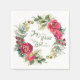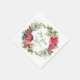 I det inspirerande citattecknet julnapkin visas en vattenfärgad andedräkt av elegant med röda blommor och rosa, grönt löv och evergreens på vit bakgrund. Den har den älskade julen sång, "Joy to the world, the Lord is kom".
