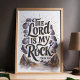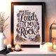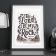 Denna slående väggkonst visar den kraftfulla bibelversen "Herren är min klippa" från Psaltaren 18:2, vackert återgiven i fet stil omgiven av ett klippigt landskap. Den monokroma paletten med jordnära toner och detaljerade klipputbildningar skapar en känsla av styrka och stabilitet, vilket gör den till ett perfekt konstverk för alla utrymmen som vill spegla tro och motståndskraft. Perfekt för att tillföra en touch av andlig inspiration till hemmet eller som en meningsfull gåva till nära och kära.