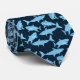 För alla hajfans som finns här ute har vi en herrklänningssn tie i ett mönster med hajar i marinblått och blått.