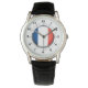 Herrklocka Frankrikes Flagga Svart Läderrem Armbandsur