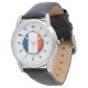 Herrklocka Klassisk Svart Läderrem Frankrikes Flagga