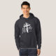 Denna herrpullovertröja visas i mörkgrå med vit text: Han Är Uppstånden