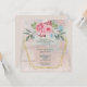 En vacker bröllopsinbjudan till ett evenemang. Ro med känslig rosa och vattenfärg inneslutet i ett guld-geometriskt ram
