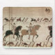 HertigWilliams riddare ankommer för att göra strid med Harolds manar, specificerar från den Bayeux tapestryen, för 1082 (ullbroderi på linne) som lokaliseras på Bibliothequen de L'Arsenal, Paris, frankrike. HertigWilliam'sens riddare ankommer för att göra strid med Harolds manar, specificerar från den Bayeux tapestryen, för 1082 (ullbroderi på linne) skapades runt om det 11th århundradet.
