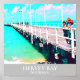 Travel-affisch av berömden Urangan-pier i Hervey Bay, en kuststad i Queensland, Australien i en modern färglös vintage stil av resekonsttryck. Blå himmel, sommarvibe och blå vatten i land Australien.