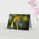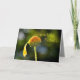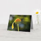 Herzliches Beileid - Trauerkarte mit einer gelben Blüte, nur noch 1 Blütenblatt übrig, vor grünem Hintergrund in der Natur mit Bokeh