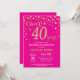 Inbjudan till 40-årsdag med het rosa och guldglitter diamantbakgrund. Guldconfetti. Vuxen födelsedag. Manlig eller kvinnlig födelsedag. För ytterligare anpassning, klicka på "Anpassa den"-knappen och använd vårt designverktyg för att ändra denna mall.