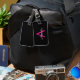 Het rosa svart skrivstil flickigt monogramnamn bagagebricka