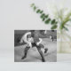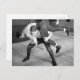 Detta vykort visar ett gammalt fotografi av två stilig, muskulösa brottare som tränar i gymmet.
