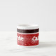 Espresso kopp med kaliente text som elak hett på mörkens röda bakgrund och svart rand överst.