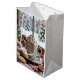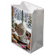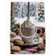 Vacker julklapp i säsong med en illustration av choklad i hett, sockerkakor, torkade orangar, kanel och Julgran utanför vintern.
