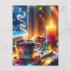 Julvykort. Ett söt fönster på julscenen med ett ångande varmt kopp av hett choklad, ett tänt ljus på en snökväll. När snö faller på denna magiska kväll önskar jag er allt gott och tydligt. Ett helgdag-vykort med söt personlig till ge är en varm och mysigt vibe.