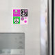 Vår Hett Färg Fredskonstruktion T-shirts, tote bags, mousserande, knappar, magneter och andra artiklar har hett, kalkgrön, svart och shock rosa blommor och fredssymboler och ett budskap för att främja världsfreden!