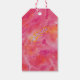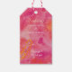 Shock rosa, Orange och Golden Gult snurrar i detta romantiska men moderna utseende. Den enda stjälken av gyllene acacacia med gult ligger i nedre hörnet och i mitten bak. Ljusstark färg målar i en abstrakt snurra.