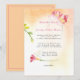 Vattenfärgad rosa och orange blommor med ömtåligt blad dekorerar en subtil tvätta av tropiskt färg. En romantisk bröllop-design med perfekt inslag av blomsterstammar, moln som vit övertäckning och klassbåttypgrafi. Inverkade med kalligrafi-skript och en stam bunden med en rosa båge på motsatt sida. Tropiskt färg av tangerinin, shock rosa och mango i söt freesia blommigt som plötsligt strömmar på inbjudan till ett glatt utseende, lycklig. En konstnärlig inbjudan och en inbjudan från elegant bröllop som kan anpassas. Ändra färgen typsnitt eller text i verktygen Design.