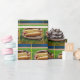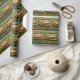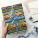 En hett hund med ord "AMERICA" skriven i senap vilar i en basebollhandske på fält, som symboliserar en koppling mellan baseboll och klassiskt amerikanskt cuisine