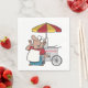 En säljare av hett hund med sin hund hett. Den här designen ser ut att vara effektiv på dessa Pappra servetter