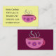 Affärskorten i hett kaffe i mugg har en brinnande mugg av utsökt kaffe i ett rosa kopp med lila blommor på det! Dessa affärskort är ett kreativ för att skapa ett påstående och är underbara för att användas som personliga kontaktkort! Fyll i din egen namn, adress, e-post, mobilt nummer och webbplats eller annan information som du behöver i den lättanvända mallen! Underbar för kaffe älskare, kaféägare, kaffearbetare eller barista!