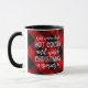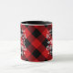 I roligt har mugg snyggt typografi, och läser: "Jag vill bara dricka hett kakao och titta på julfilmer" över rött och svart buffelcheck.