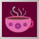 Den här illustrationen av kaffet i hett har ett ångkott kopp kaffe i ett söt rosa mugg med blommor i lila och orange! Den ursprungliga kaffekonsten är den perfekt gåva som man kan köpa till alla som i kärlek hetter koffeinerade drycker som kaffe, espresso, cappuccino, café au lait eller till och med en fin stor mugg av hett choklad!