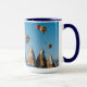 Det här fotot innehåller luft-ballonger i hett i Cappadocia, Nevsehir, Centralanatolien. Cappadocia har ett overkligt fantastisk som gör ballongflygningar till en av de tre främsta i världen. De spektakulära surrealistiska landskapen i kombination med utmärkt flygande villkor gör det möjligt för ballonger att försiktigt röra sig över och mellan skorsten, duvhus som dras in i de unika sten-formationerna, fruktodlingarna och vinodlingarna genom imponerande dalar, med olika sten-formationer, färg och egenskaper och sedan flyta upp över rippade områden.