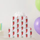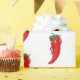 En söt röd chilipepparkaraktär. Anpassningsbarnas presentemballering av pappra rullar. Tanken på krydda mat och party-deka.