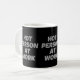 Hett person i arbete kaffemugg