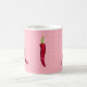 Mugg som har en hett röd peppardesign på vardera sidan och en i mitten. Det finns också en liten schackrad bakgrund med gräns runt den. Välj vilken typ av mugg som du vill ha den här designen på. Gör en underbar gåva!