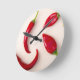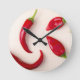 Hett röd chilipaprika på ett lätt träpapp rund klocka