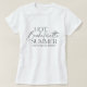 Matchande t-shirts för din sommarens möhippa semester har "het möhippa sommar" i trendig typografi med en rad anpassad text under; visas med destinationen och året.