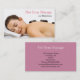 Foto av en härlig ung kvinna som har en hettstenmassage. Visitkortmall för massageterapiföretag.