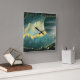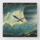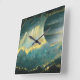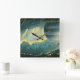 Heva Weva Grönt och Guld målade Planet Himlar Art Fyrkantig Klocka