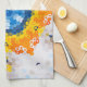 Hex Mandala Blue Gult Orange och White Kökshandduk