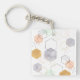 Hex Scatter I av Gabrielle McClure. Hexagoner av olika former och mönster som är spridda över en vit bakgrund.