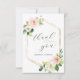 Hexagon Guld Ram Rosa Blommigt Tack Kort