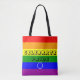 Fira homosexuella, lesbisk, trans och fullt i HBT QIA+-Pridet med denna regnbågsutformning på en snyggt tote. Meddelandet på framsidan och baksidan är helt anpassade med ett meddelande från dig.