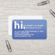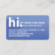 Gör ett underbart första intryck och presentera dig för potentiella kunder med våra "hi my namn is"-affärskort. Designen har "hi" i en modern typografisk design med en diagonal textskugga. Snyggtens blå övertoning ger ett modernt fetstil. Anpassa med namn, titel och kontaktinformation. Den omvända sidan är designad i rent, minimalt stil med personlig monogram och social medieferens.