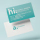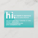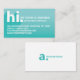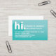 Gör ett underbart första intryck och presentera dig för potentiella kunder med våra "hi my namn is"-affärskort. Designen har "hi" i en modern typografisk design med en diagonal textskugga. Snyggt teal-övertoning ger ett modernt, fetstilt utseende. Anpassa med namn, titel och kontaktinformation. Den omvända sidan är designad i rent, minimalt stil med personlig monogram och social medieferens.