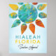 Ljusstark, färglös Hialeah Florida-design som är 100% Solskin godkänd. Varm färg av rött, orange, turkos och akvarier i vattenfärgen stil mönster på en söt blå skuggad bakgrund.