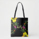 Svart ton med söt, briljant färgad hibisus skriver ut i gult, rosa, lila och grönt. Lägg till ditt namn och gör det till ditt!