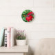 I den här förbluffande bilden markeras en röd hibiscus-blomma mot en fläckig bakgrund för grönten.
