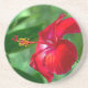 I den här förbluffande bilden markeras en röd hibiscus-blomma mot en fläckig bakgrund för grönten.