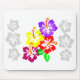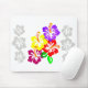 Färgt blommönster av tropiska hibiscus i lila, rött, orange, magenta och gult färg.