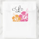 Hibiscus Flower Monogram Bröllop Fyrkantigt Klistermärke
