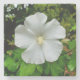 Nära en vit Hibiscus-blomma med en fullt utvecklad pistil efter regnet