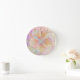 En luminiscent korall-rosa, tropisk hibiscus-blomma med lila, guld och rosa metallisk bakgrund. Siffror är valfria.