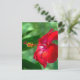 I denna fantastiska bild framhävs en röd hibiskusblomma mot en fläckig grön bakgrund.
