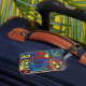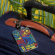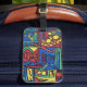 Hög, ovimmelaktig, fetstil med handmålad modern geometrisk konst